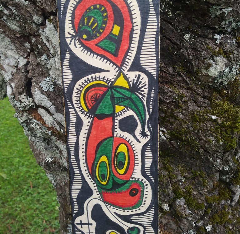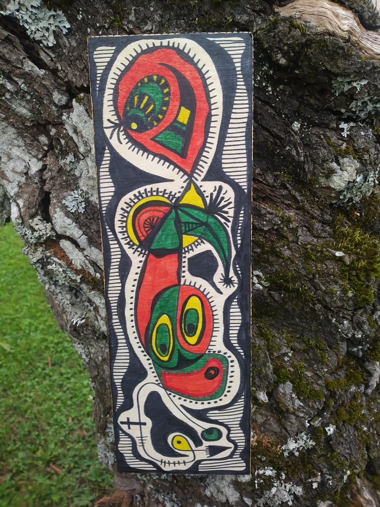With magical power and walking the fine line between the worlds, the Skinwalker moves in silence—unseen, yet deeply felt. Drawing from Navajo legend, this being defies the fixed borders of identity, slipping between animal and human, spirit and matter. It is both a warning and a wonder—a figure born of transgression, yet holding ancient knowledge of balance and disruption. In the tapestry of life, it is the knot where dualities meet: light and shadow, sacred and profane, seen and unseen. This piece invites the viewer to sense that in-between space—the threshold where transformation becomes possible.